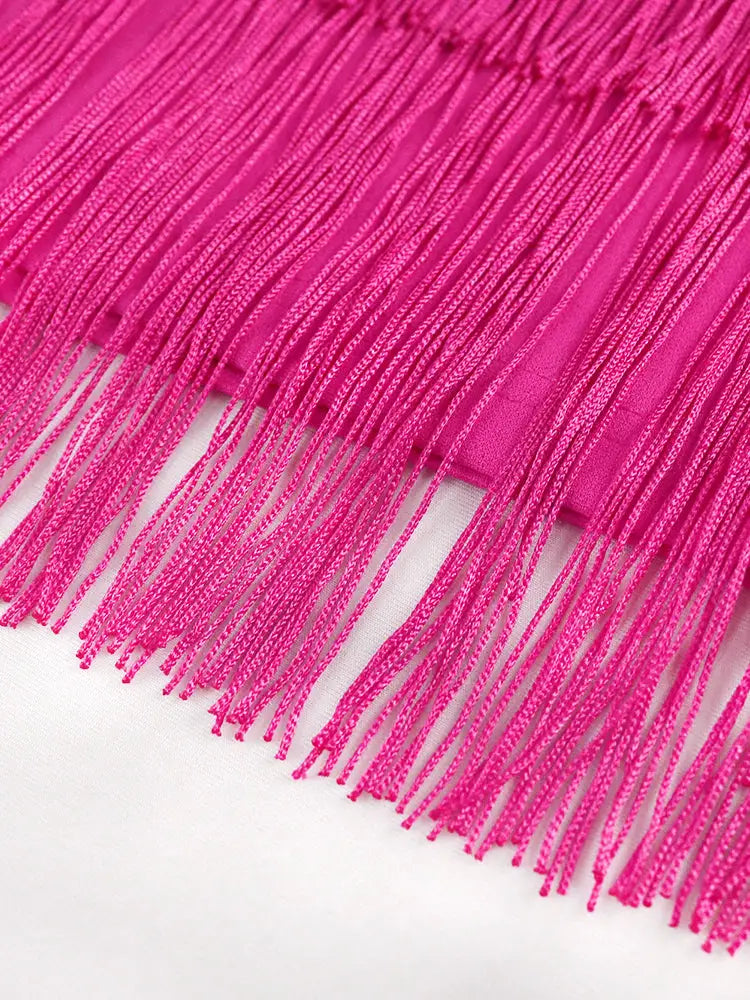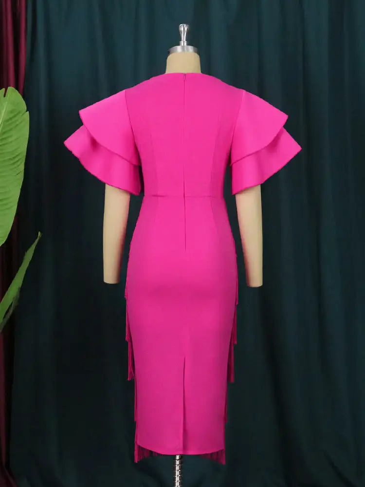 Ruffle Sleeve V Neck Midi Fringe Dress Women's
