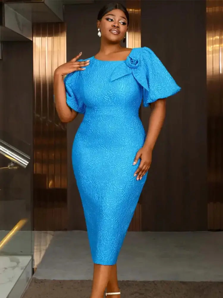 AOMEIDRESS Summer V Collar Party Outfits for Women 3D Flower Short Bubble Sleeve