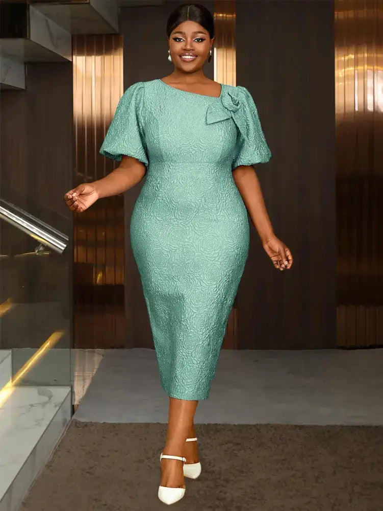 AOMEIDRESS Summer V Collar Party Outfits for Women 3D Flower Short Bubble Sleeve - DarkGreen / S is backordered and will ship as soon as it is back in stock.