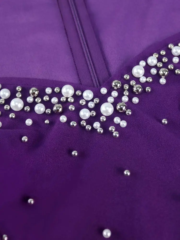AOMEIDRESS Going Out Outfits V Neck Beaded Bodycon Dress Purple
