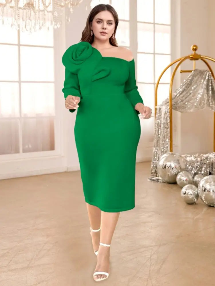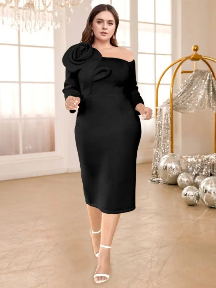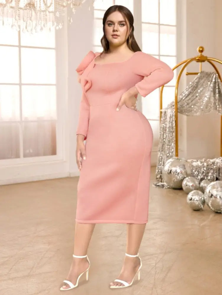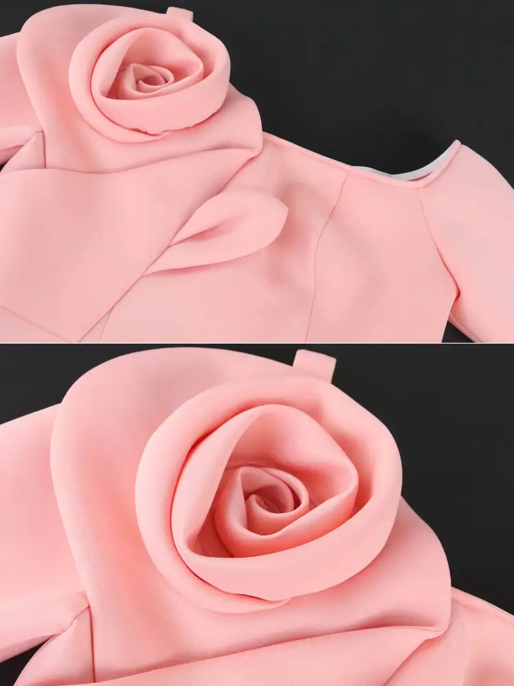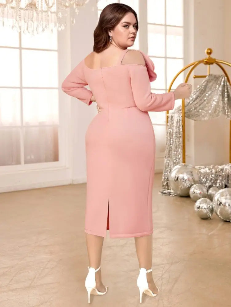 AOMEIDRESS One Shoulder Dress Pink Flower Long Sleeves Package Hip - Pink / S is backordered and will ship as soon as it is back in stock.