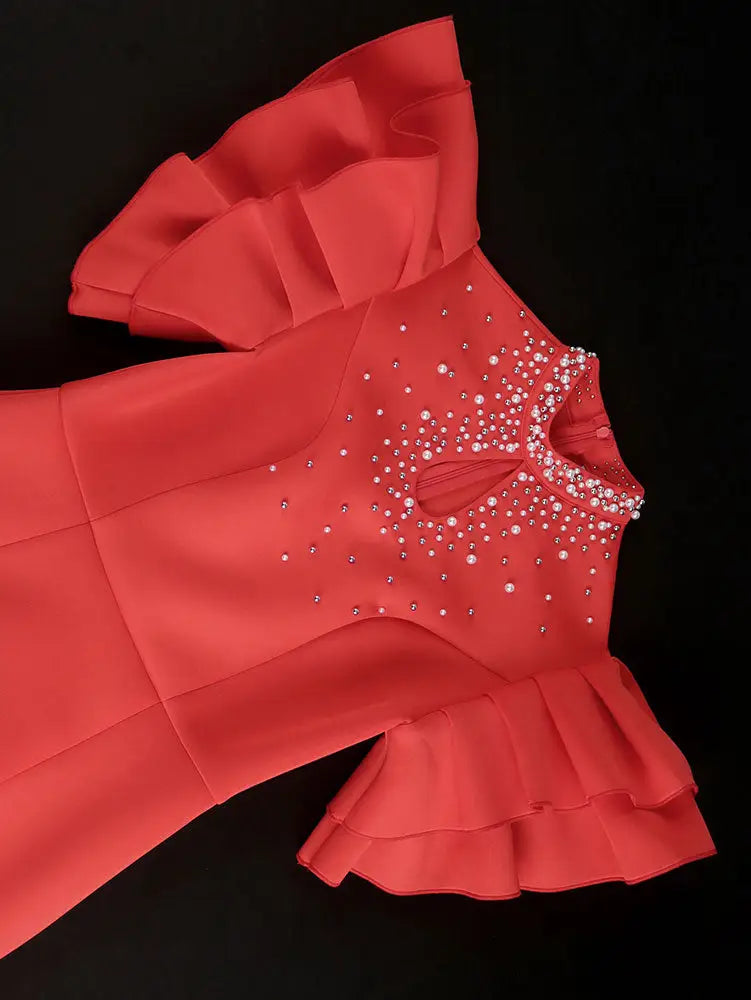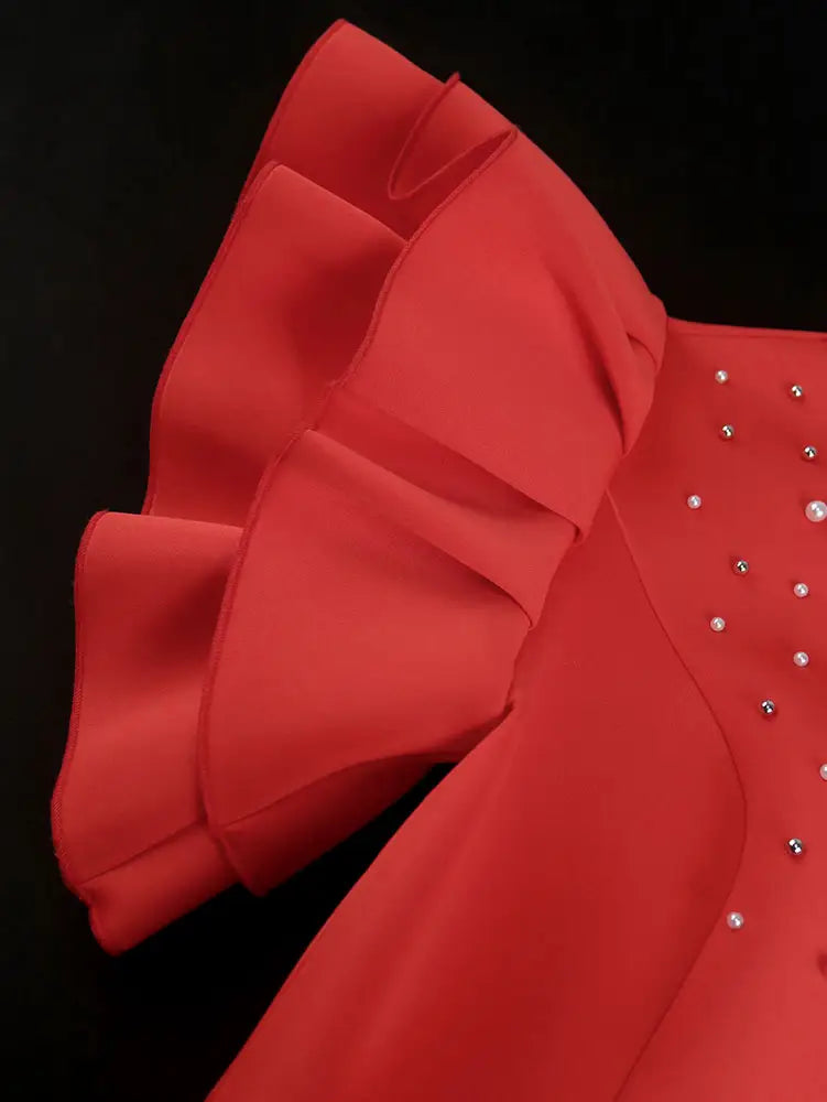 AOMEIDRESS Ruffle Shoulder Dress Luxury Grace Wedding Guest for Women - Red / S is backordered and will ship as soon as it is back in stock.