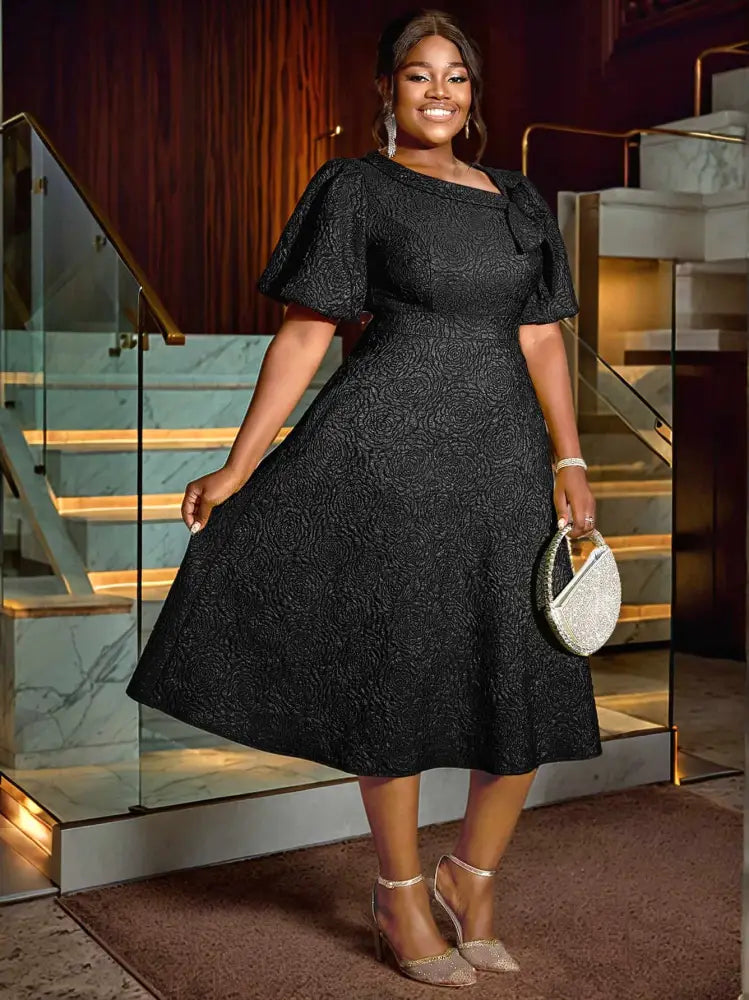 AOMEIDRESS Elegant Wedding Guest Dresses Jacquard A Line 3D Flower