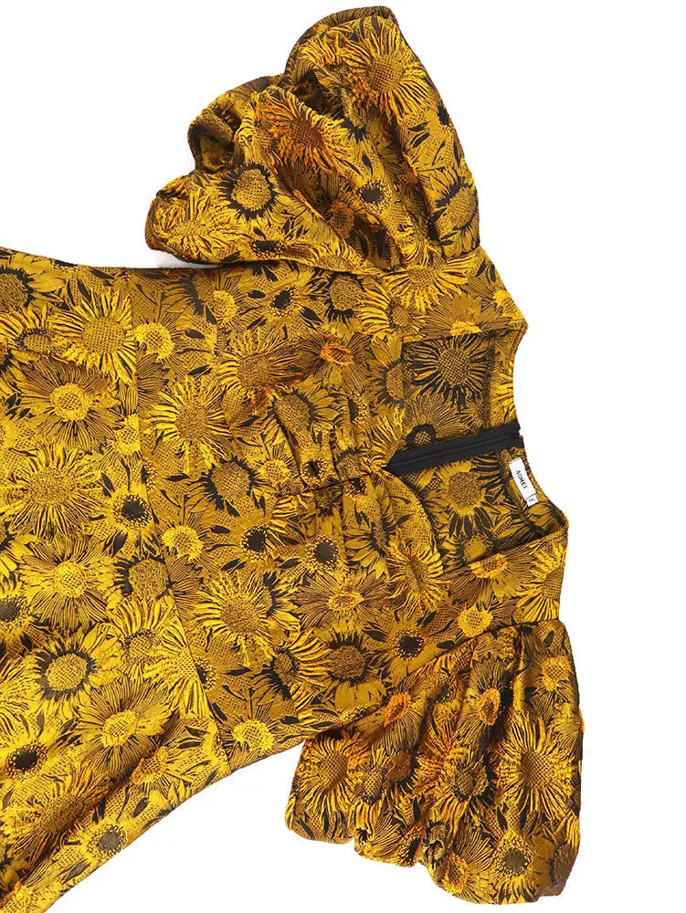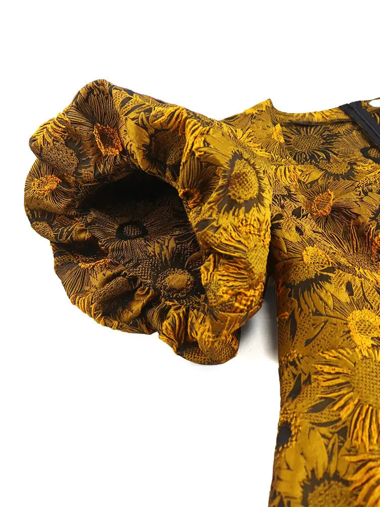 AOMEIDRESS Jacquard A Line Dresses Short Lantern Sleeves Elegant Retro Party Event - Yellow / S is backordered and will ship as soon as it is back in stock.