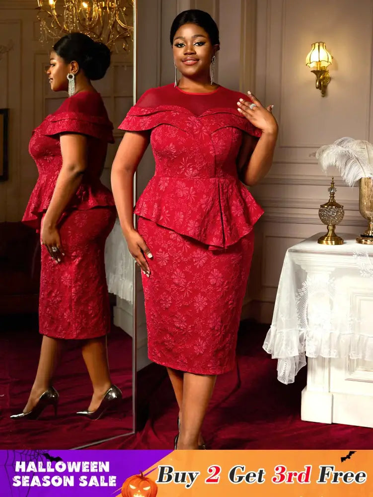 AOMEIDRESS Jacquard Bodycon Dress Round Neck Elegant Party Style - Red / S is backordered and will ship as soon as it is back in stock.