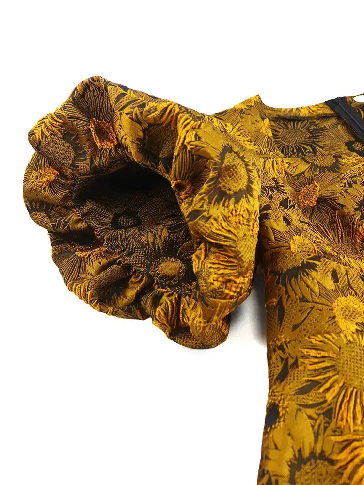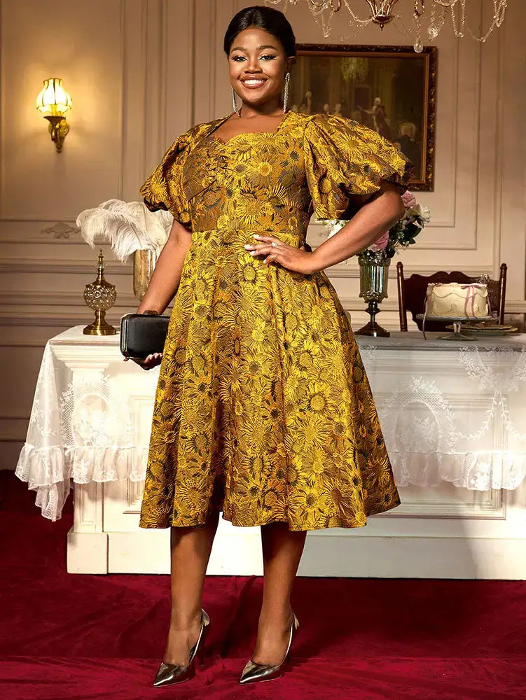 Test Jacquard A Line Dresses Short Lantern Sleeves Elegant Retro Party Event - Yellow / S is backordered and will ship as soon as it is back in stock.