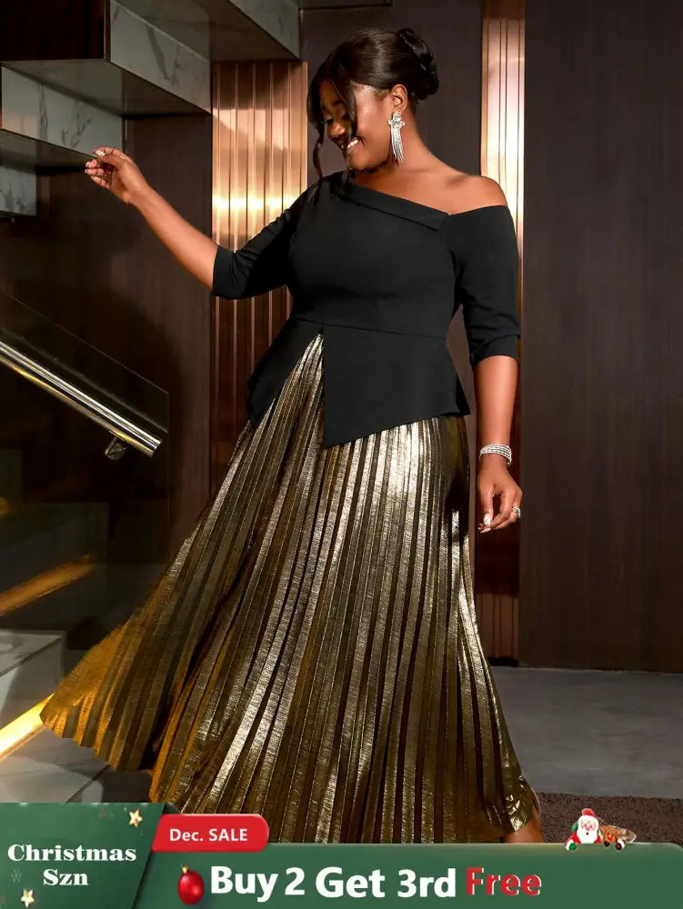 AOMEIDRESS Women Skirts Sets Irregular Black Half Sleeve High Elastic Waist - Black / 1XL is backordered and will ship as soon as it is back in stock.