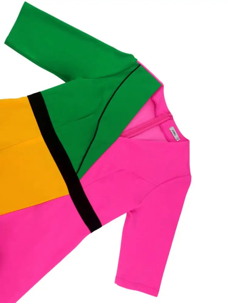 AOMEIDRESS V Neck Three Quarter Sleeves Color Block Bodycon Dress - Rose / 0XL is backordered and will ship as soon as it is back in stock.