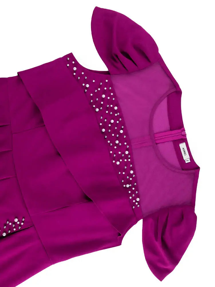AOMEIDRESS Elegant Beaded Peplum Belly Cover Church Jumpsuit O Neck Purple / S