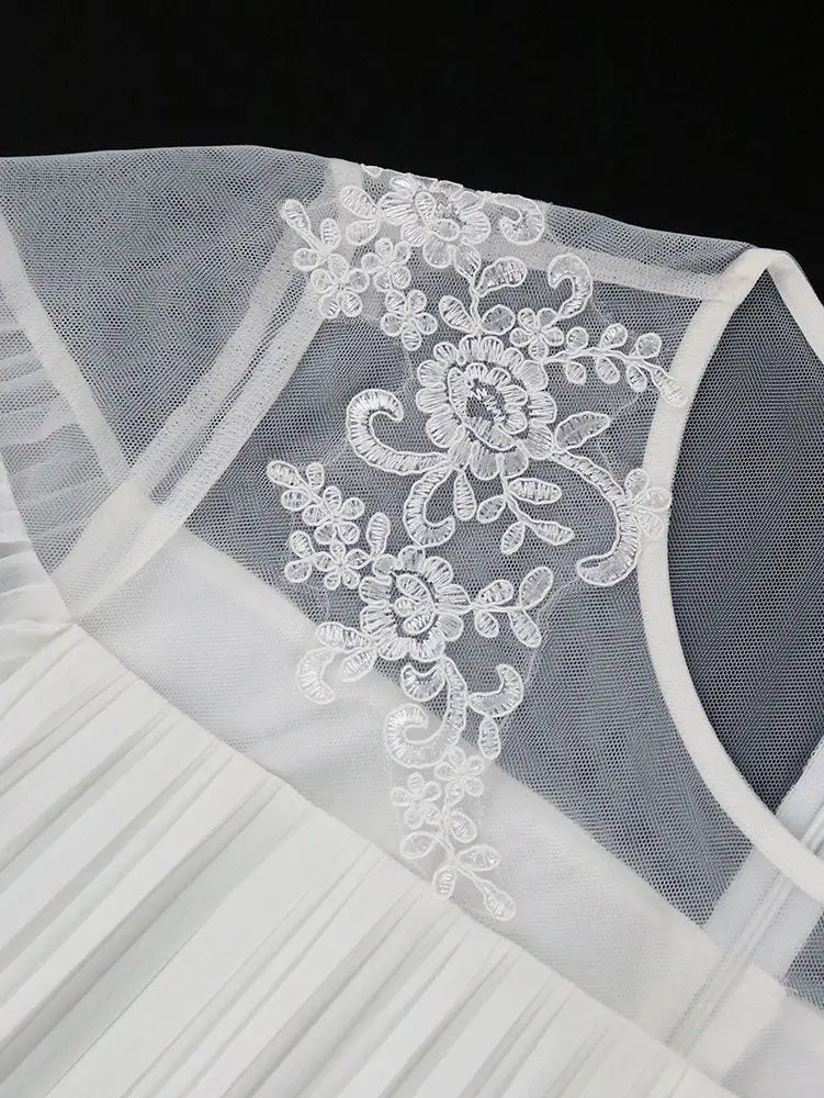 AOMEIDRESS Loose Pleated Chiffon Dress O Neck Lace Up Casual Clothing - White / S is backordered and will ship as soon as it is back in stock.