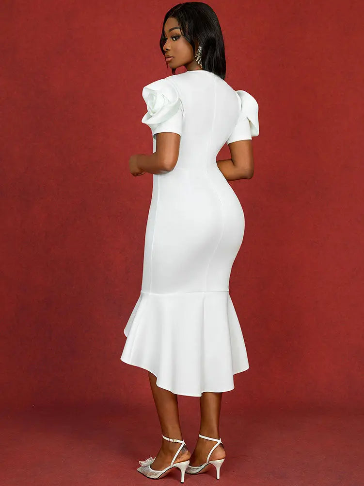 AOMEIDRESS White Bridal Gowns O Neck Asymmetrical Mermaid Dresses - White / S is backordered and will ship as soon as it is back in stock.