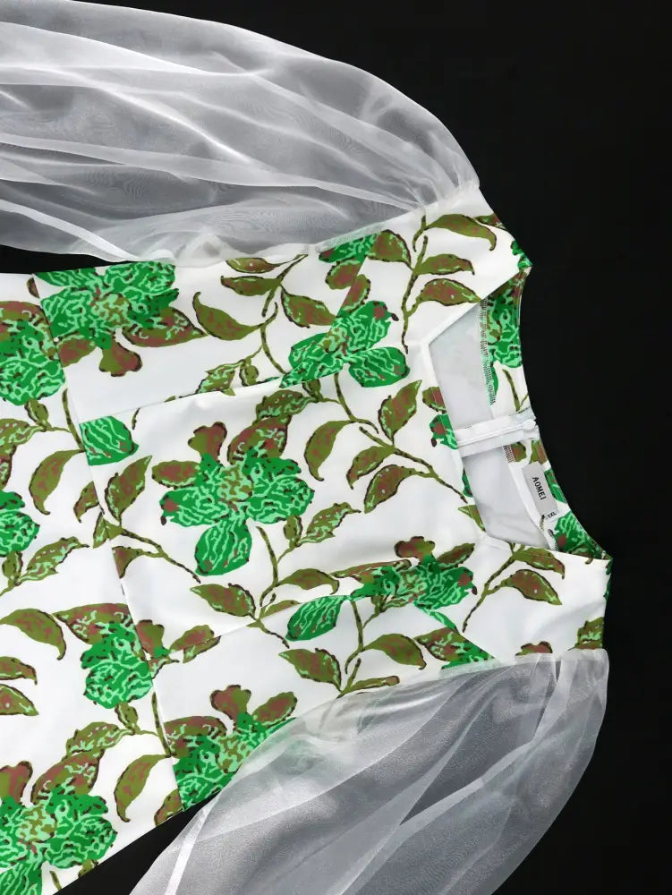 AOMEIDRESS Flower Printed Dress Mesh Patchwork Long Lantern Sleeve