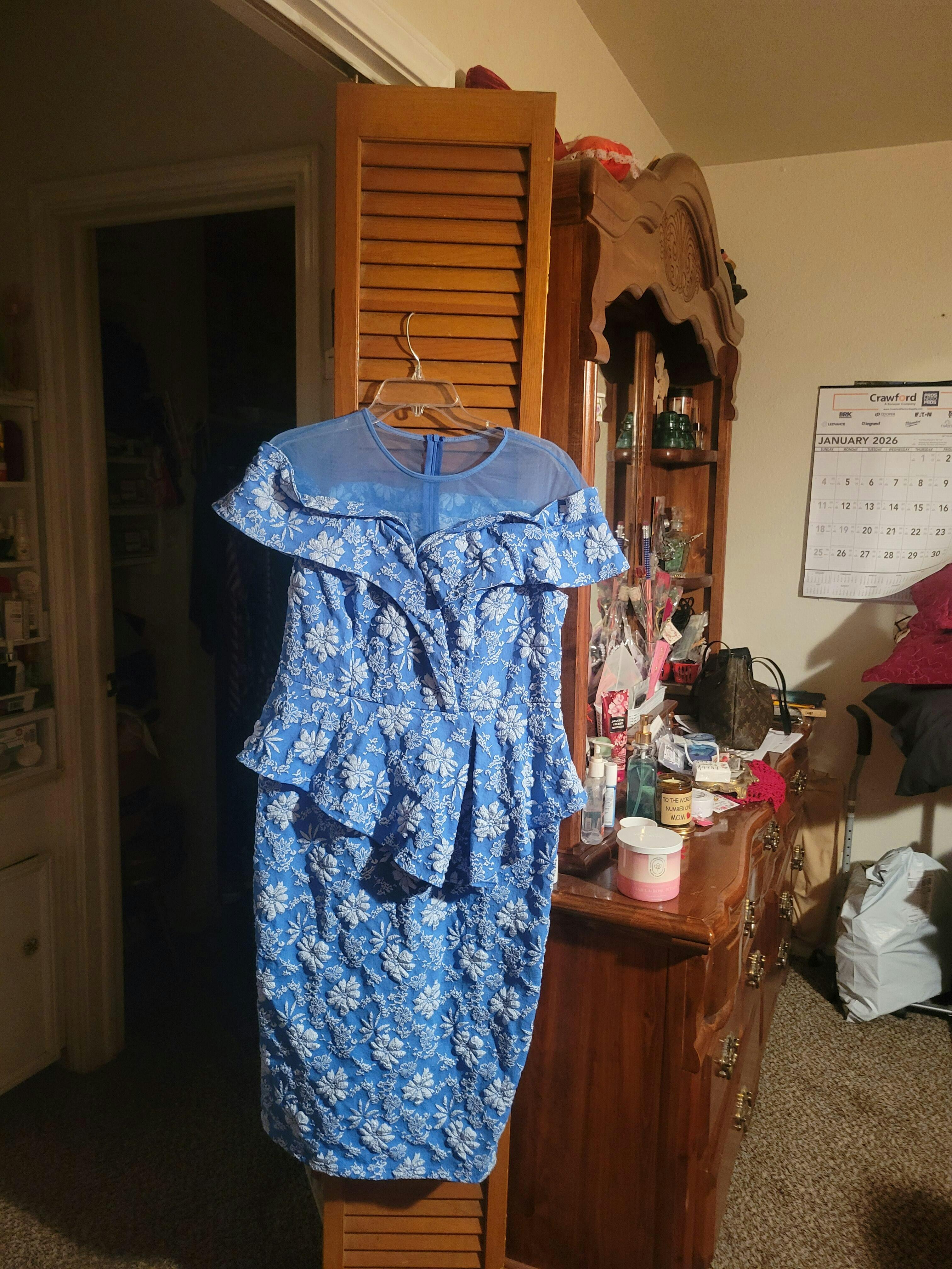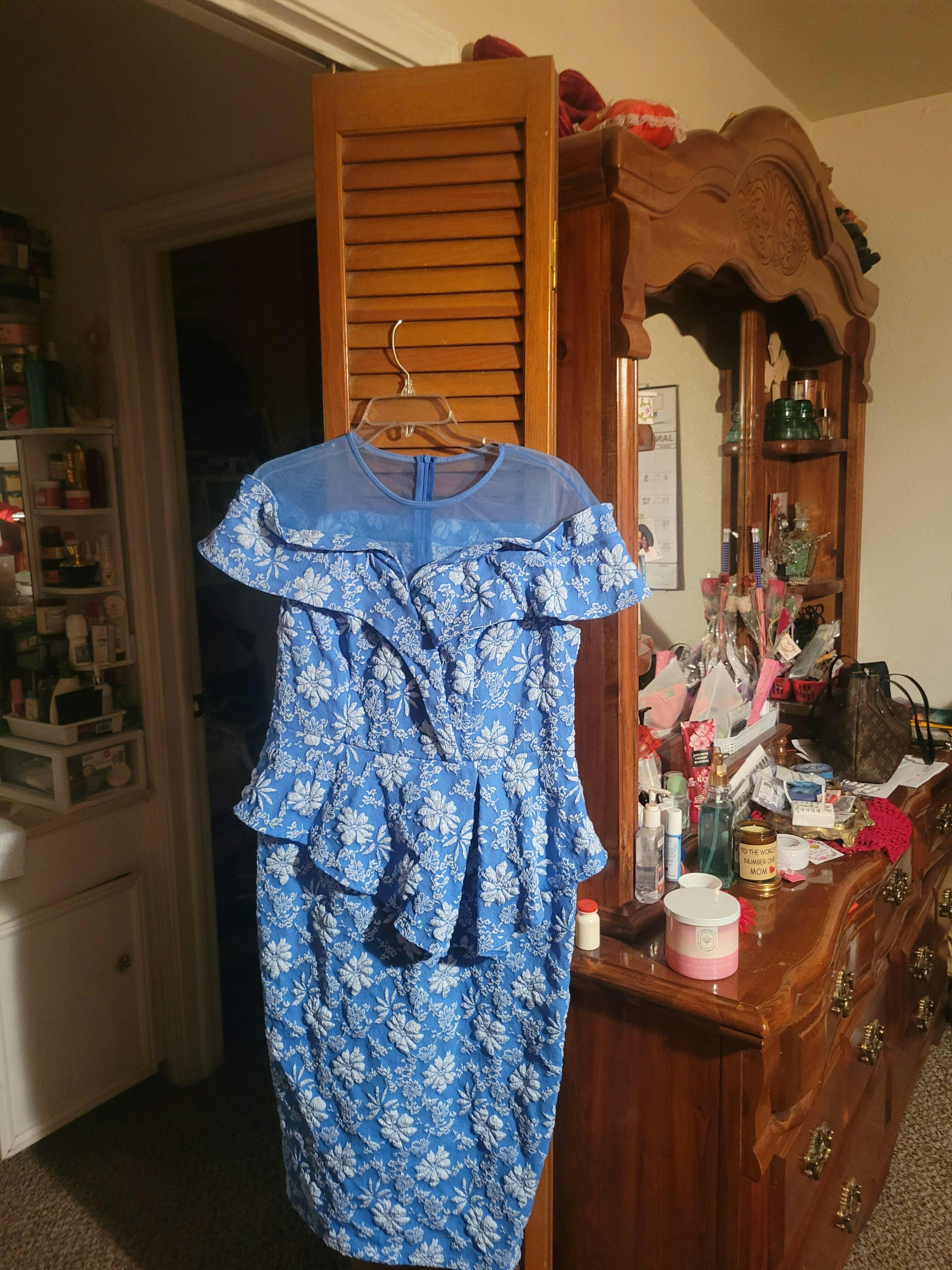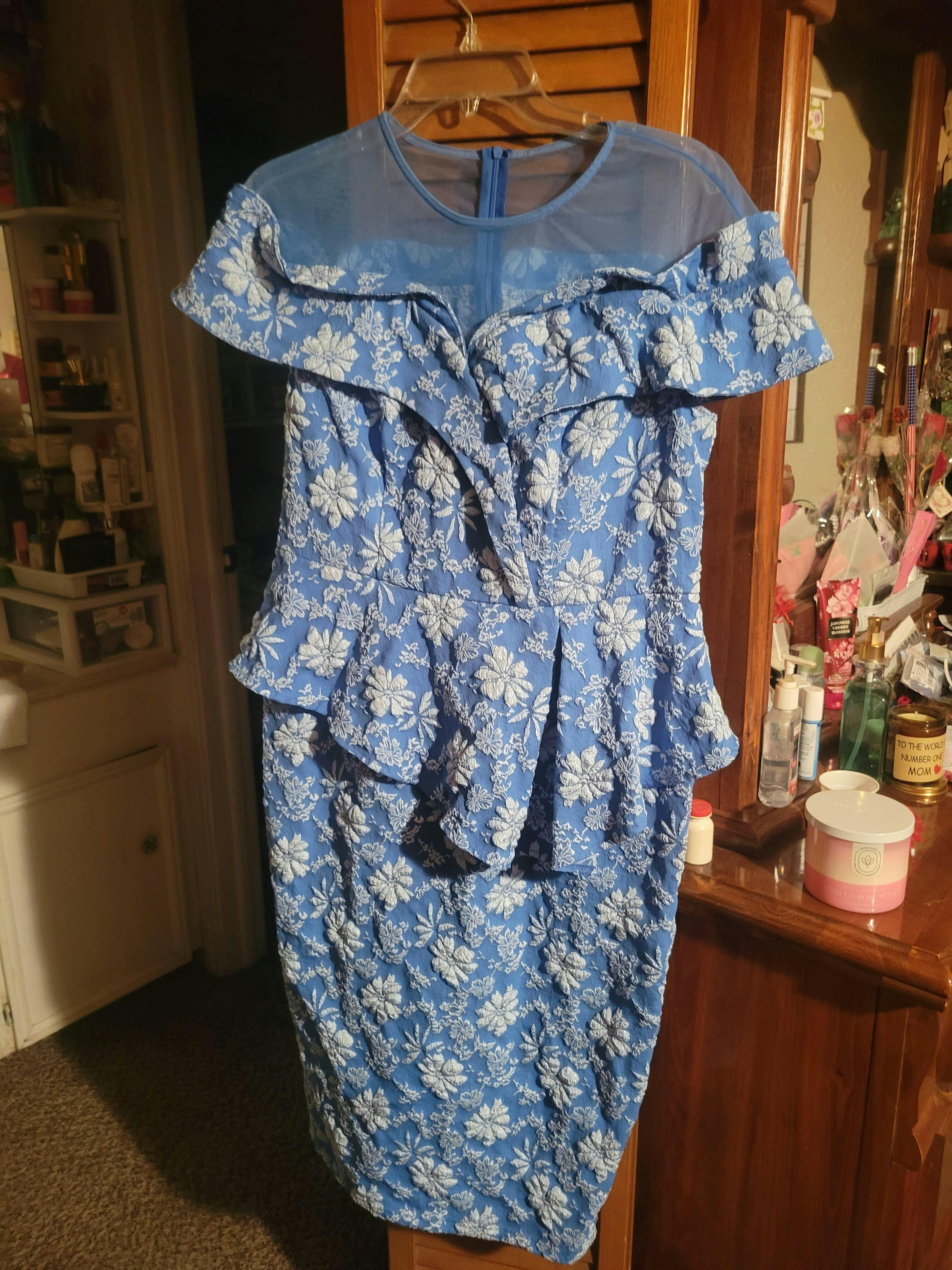 AOMEIDRESS Jacquard Bodycon Dress Round Neck Elegant Party Style Blue / S