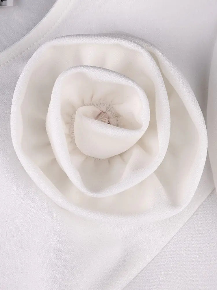 AOMEIDRESS Elegant White Top Long Sleeve with 3D Flower Pearl Tassel