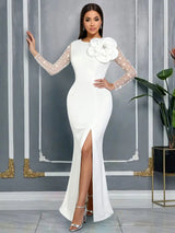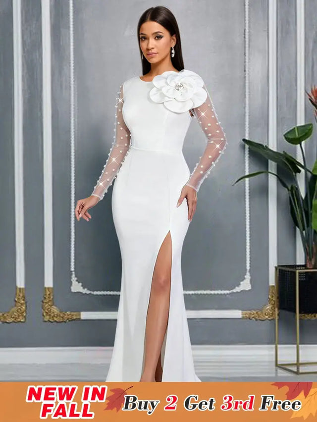 AOMEIDRESS Elegant White Beading Dress 3D Flower For Bridal Shower - WT / S is backordered and will ship as soon as it is back in stock.