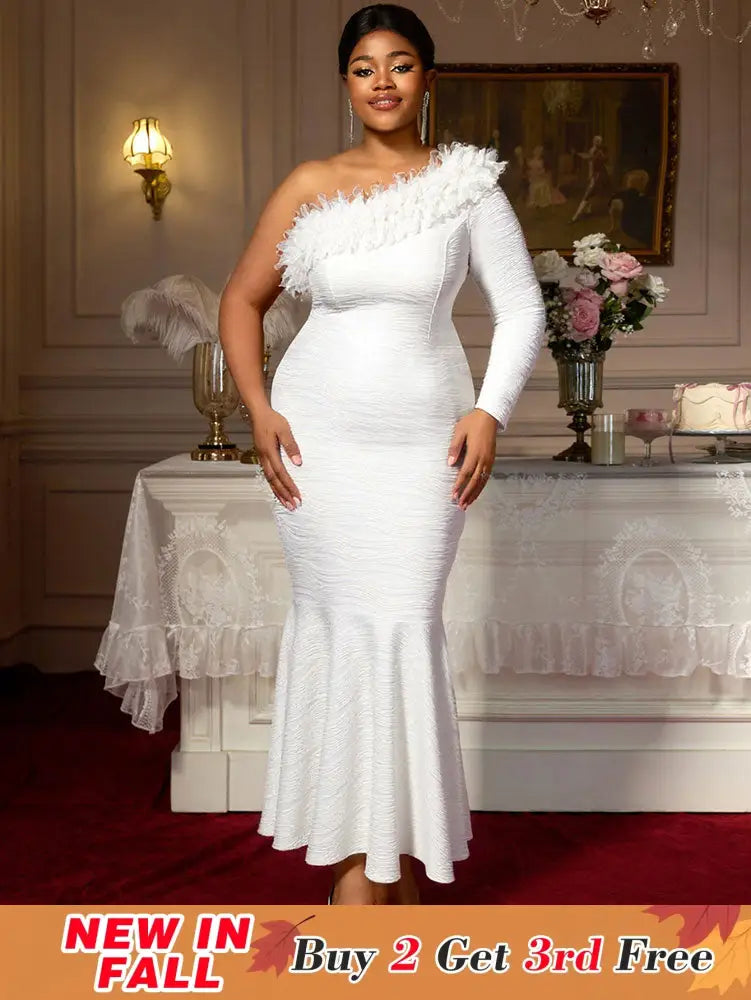 AOMEIDRESS Elegant White One Shoulder Mermaid Dress for Bridal Shower