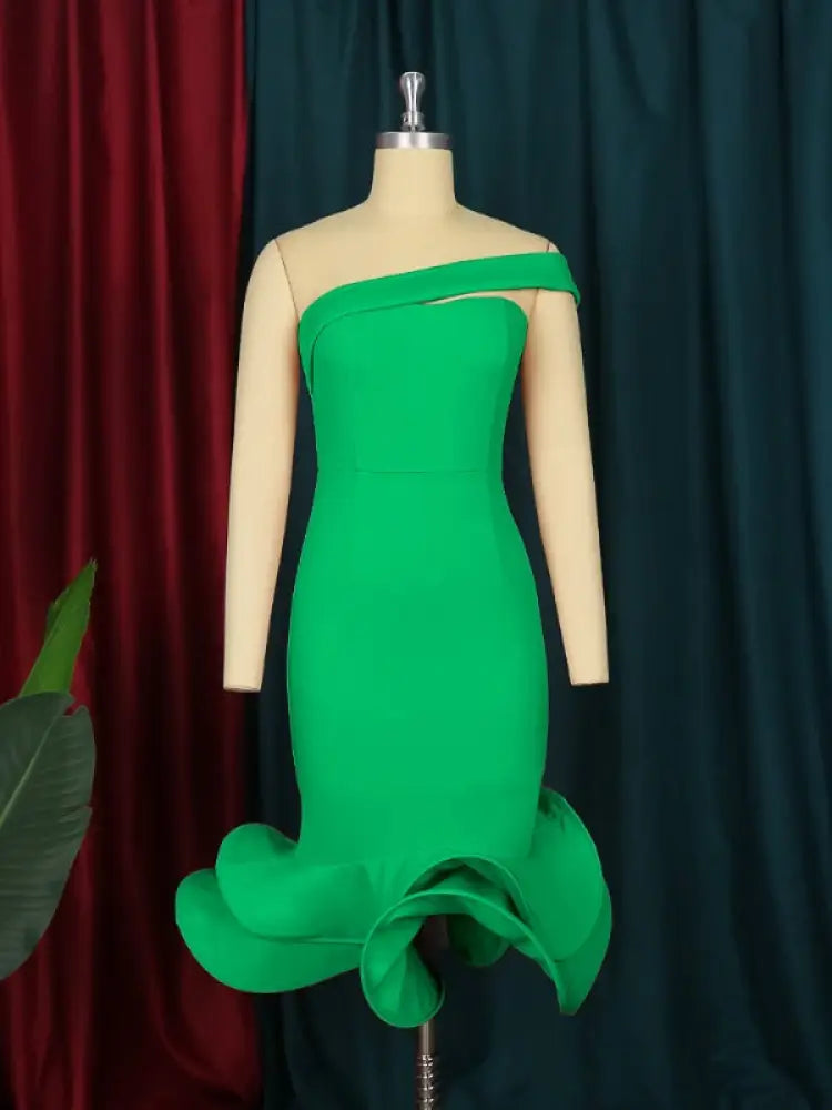 AOMEI One Shoulder Sleeveless Mermaid Dresses Midi - Green / 2XL is backordered and will ship as soon as it is back in stock.