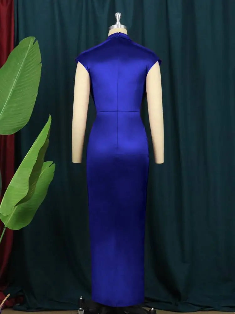 Navy Blue Ruched Long Dress