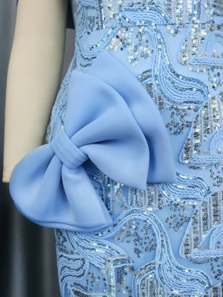 AOMEI Bowtie Asymmetrical Sequin Party Dress Midi - Blue / S is backordered and will ship as soon as it is back in stock.