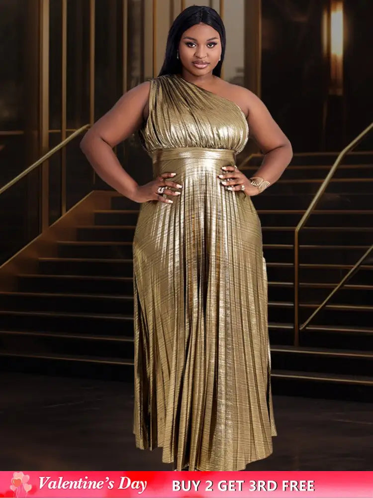AOMEIDRESS One Shoulder Party Maxi Dress Shiny Pleated - Gold / S is backordered and will ship as soon as it is back in stock.