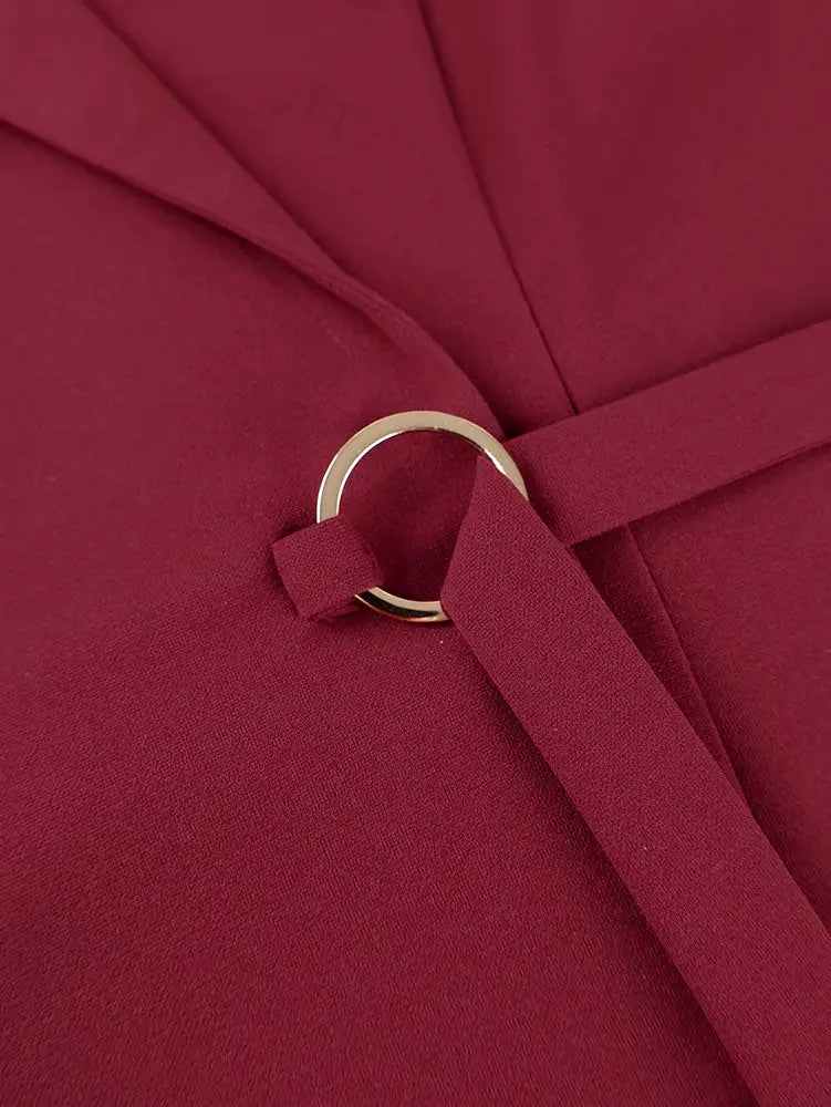 AOMEIDRESS Chic Wine Tops with Ruffled Belted Waist Evening Events