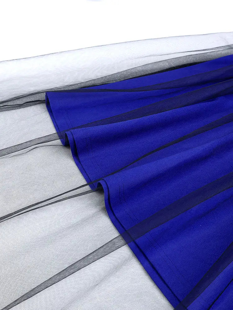 AOMEIDRESS Elegant A Line Dress Flare Sleeve Peplum Mesh Hem Gowns - Blue / L is backordered and will ship as soon as it is back in stock.