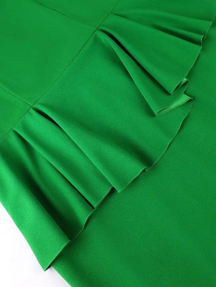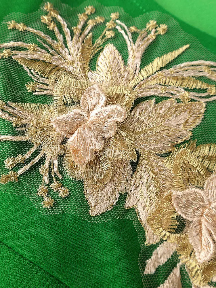 AOMEIDRESS Elegant Bodycon Dress Long Sleeve Floral Appliques Peplum Green / L