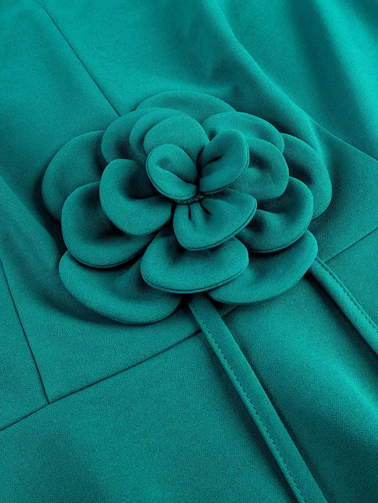 AOMEIDRESS Elegant Two Piece Set 3D Flower Peplum Top Wide Leg Pants LakeGreen / L