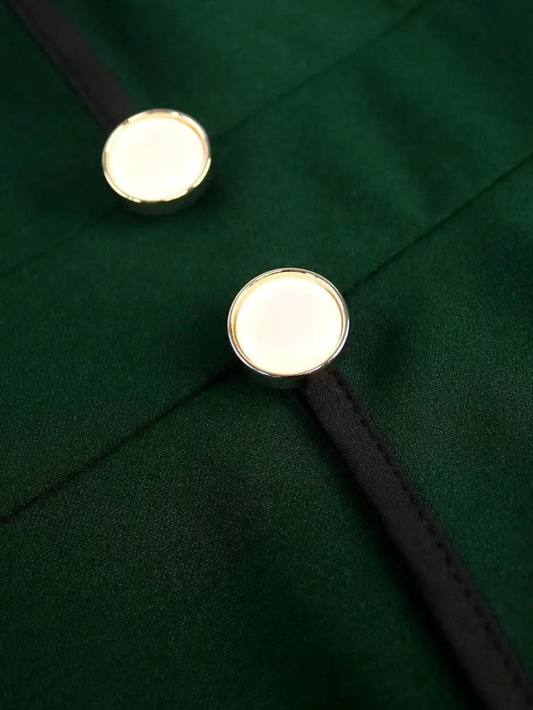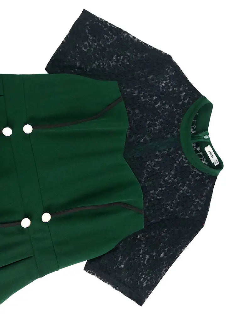AOMEIDRESS Peplum Bodycon Dress Lace Sleeve Button Church Occasions DarkGreen / L