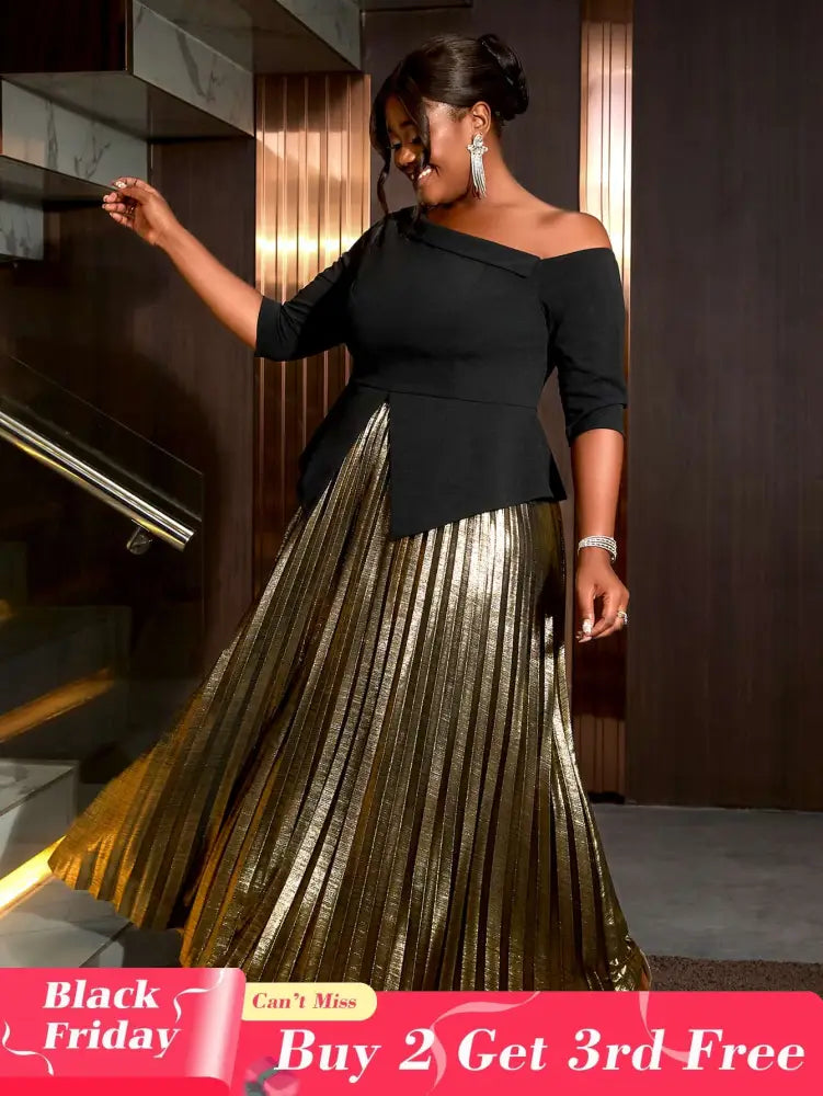 AOMEIDRESS Women Skirts Sets Irregular Black Half Sleeve High Elastic Waist - Black / 1XL is backordered and will ship as soon as it is back in stock.