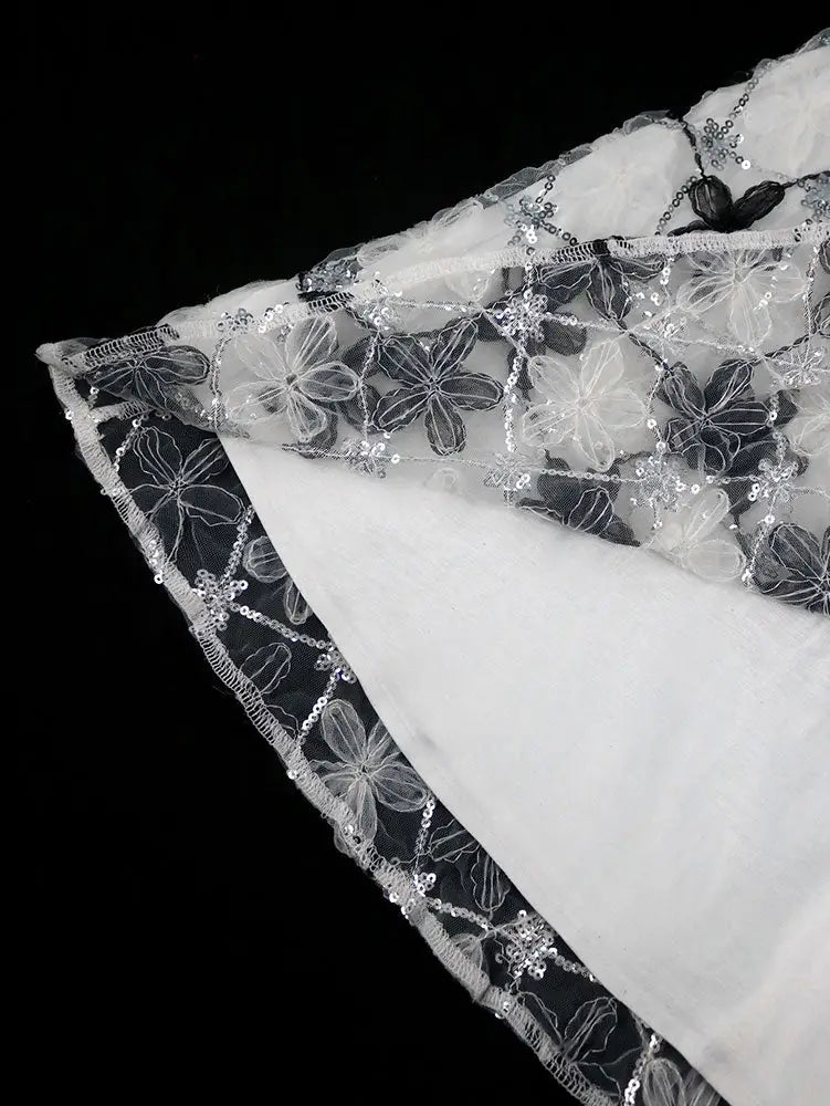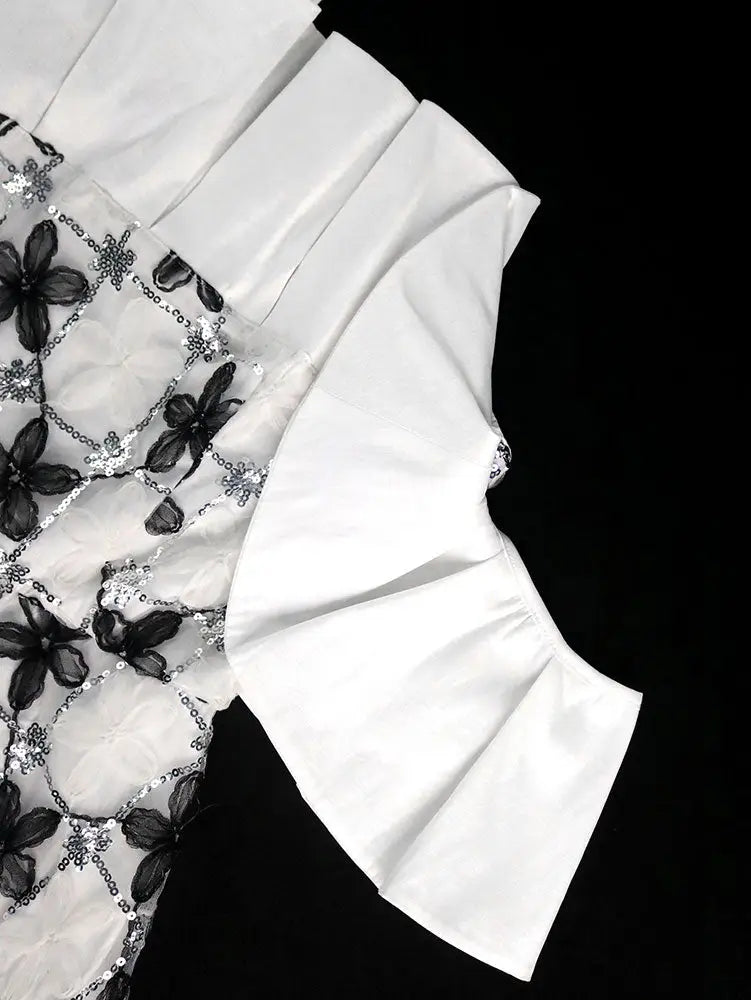 AOMEIDRESS Elegant Off Shoulder Dress Ruffle Neck Mesh Sequin Overlay White / S