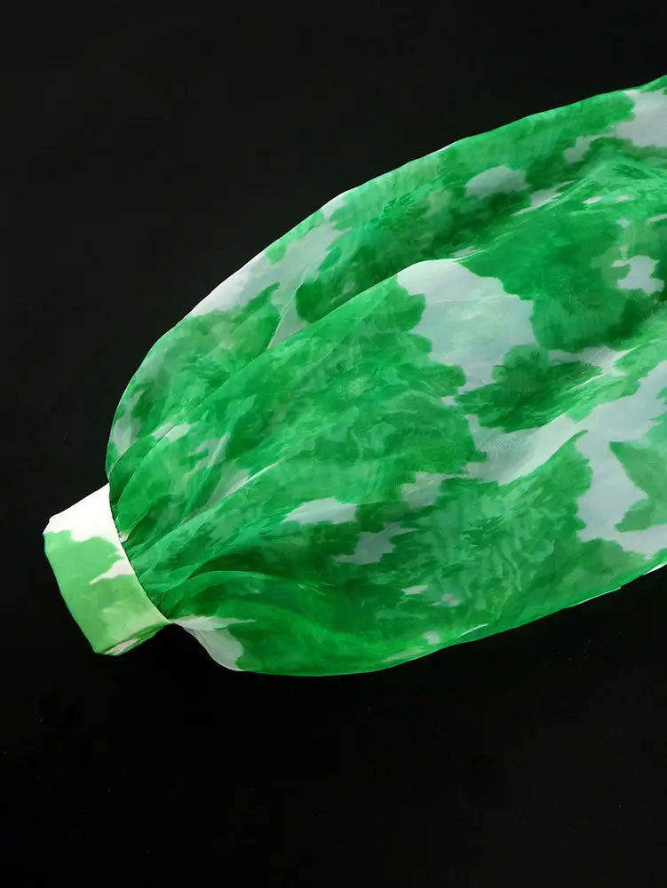 AOMEIDRESS Elegant Print A Line Midi Party Dress O Neck Latern Sleeves - Green / S is backordered and will ship as soon as it is back in stock.