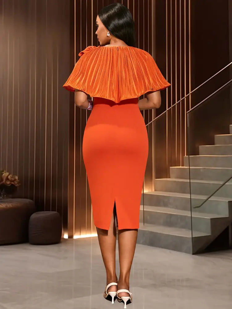 AOMEIDRESS Elegant Wedding Evening Dress with 3D Flower Pleated Cape - Orange / S is backordered and will ship as soon as it is back in stock.