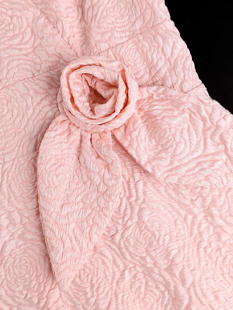 AOMEIDRESS Elegant Jacquard A Line Church Dress 3D Flower Puff Sleeve - Pink / S is backordered and will ship as soon as it is back in stock.