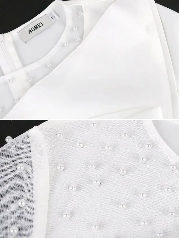 AOMEIDRESS Beading Party Dress Peplum Sexy Long Sleeve Mesh Patchwork