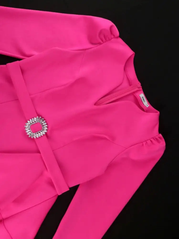 AOMEIDRESS V Neck Dress Long Sleeves Ruffles Asymmetrical High Waist - Rose / S is backordered and will ship as soon as it is back in stock.
