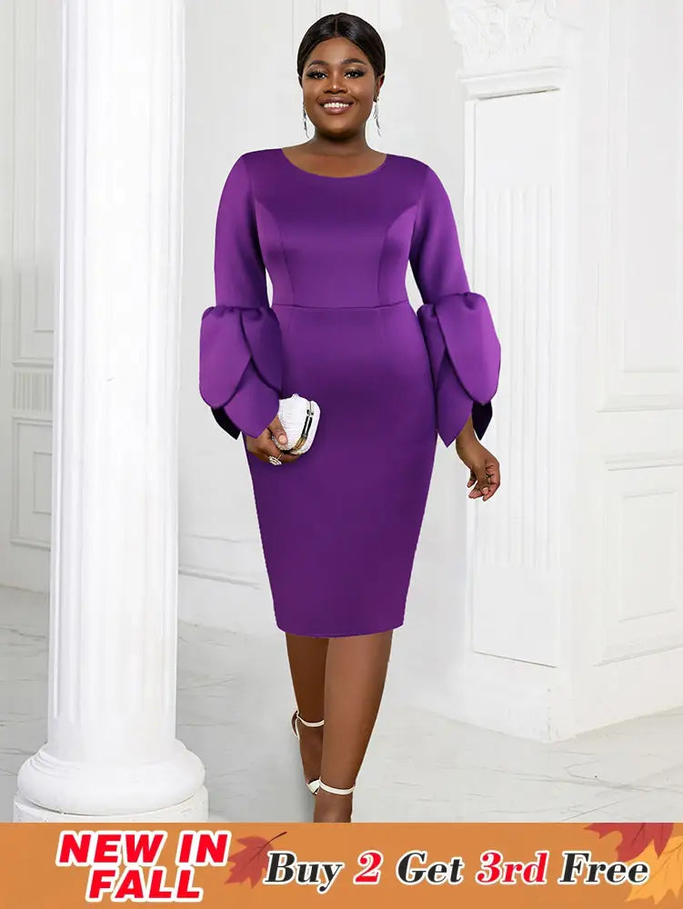 AOMEIDRESS Elegant Purple Midi Dress for Party Wedding Ruffles Sleeve - Purple / S is backordered and will ship as soon as it is back in stock.