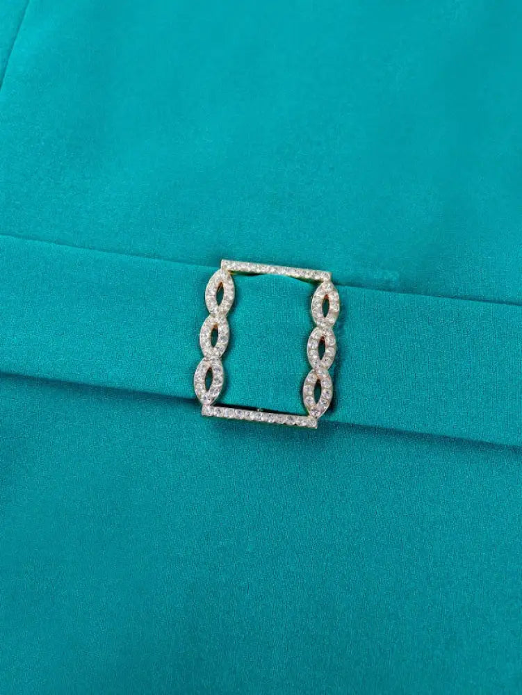 AOMEIDRESS Green Fishtail Dress Half High Collar Beading Cloak Sleeve