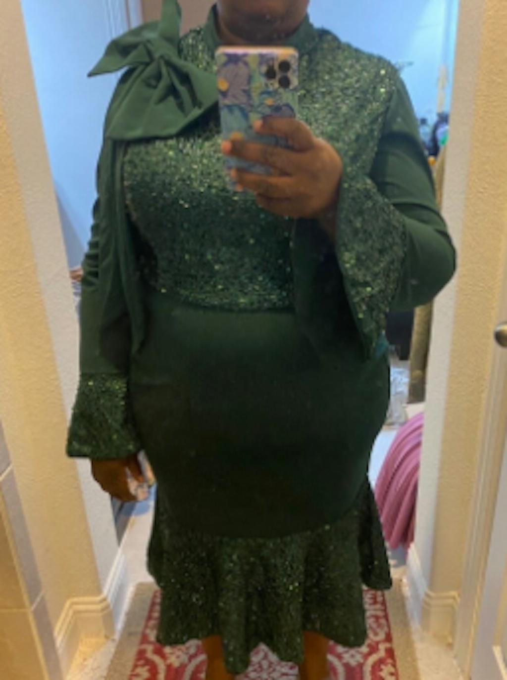 AOMEIDRESS Green Mermaid Dress Sequins Patchwork Big Bow Flare Sleeve - Green / S is backordered and will ship as soon as it is back in stock.