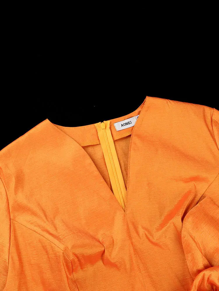AOMEIDRESS Elegant Tops V Neck Long Sleeves with 3D Flower Peplum Hem - Orange / S is backordered and will ship as soon as it is back in stock.