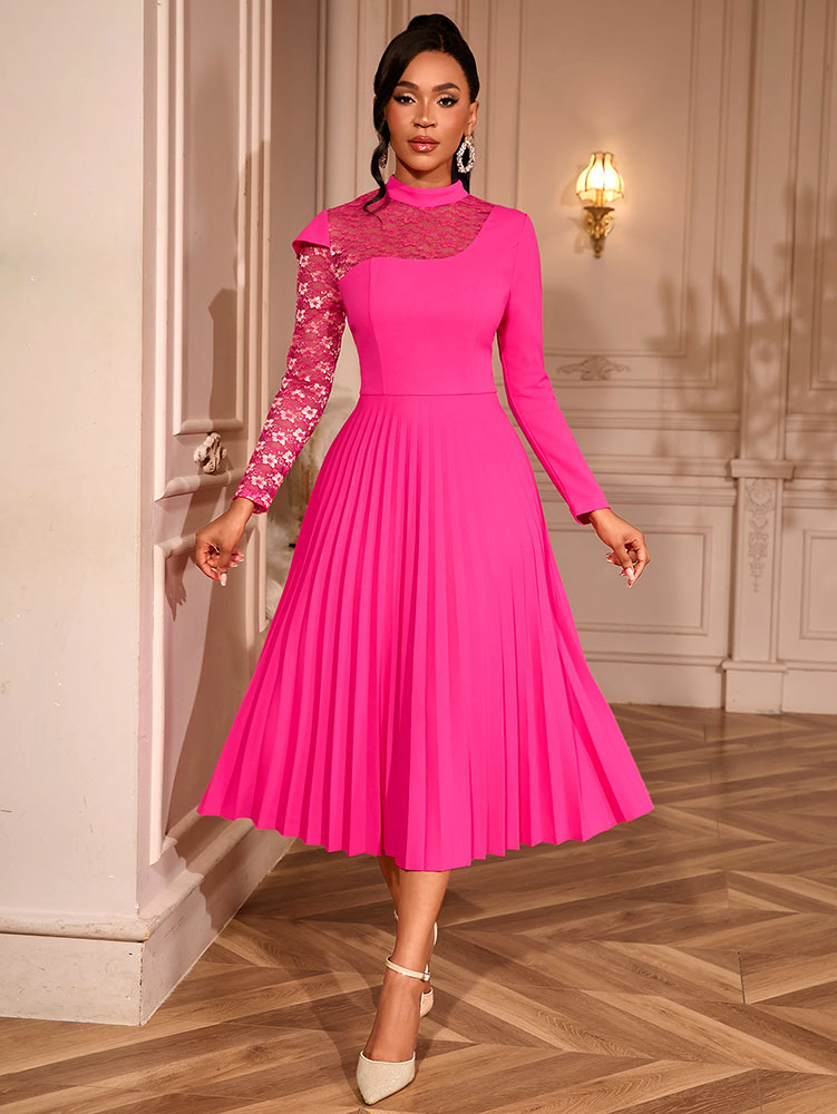 AOMEIDRESS Elegant A Line Pleated Dress Lace Long Sleeves Party Wear - Rose / S is backordered and will ship as soon as it is back in stock.