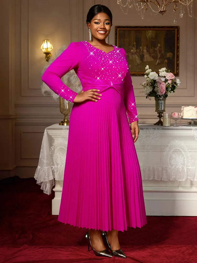 AOMEIDRESS Elegant Autumn A LIne Pleated Bead Dress for Party Wedding - Rose / S is backordered and will ship as soon as it is back in stock.