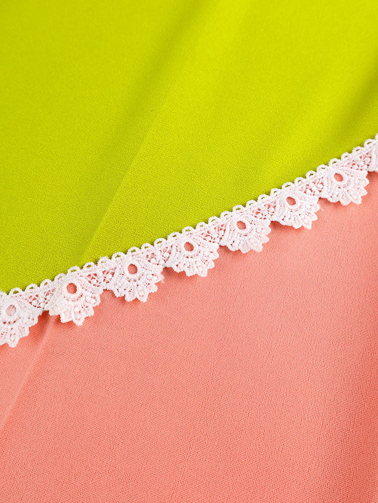 AOMEIDRESS Stylish Colorblock Wide Legged Pants Lace Trim Causal Wear - MustardGreen / S is backordered and will ship as soon as it is back in stock.