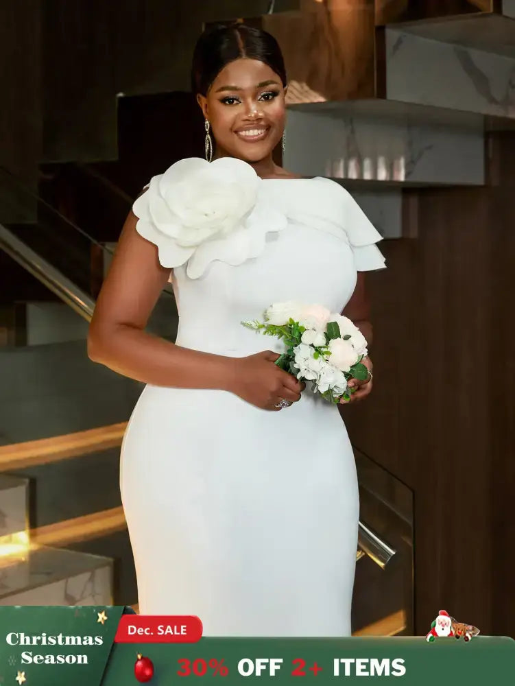 AOMEIDRESS White Mother's Day Dresses for Women 3D Flower Ankle Length One Shoulder - White / 1XL is backordered and will ship as soon as it is back in stock.