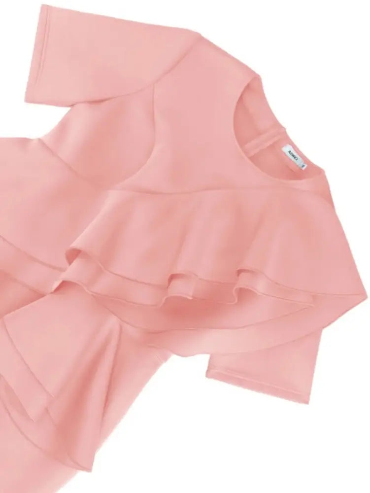 AOMEI Women Ruffles Peplum Dress O Neck Midi
