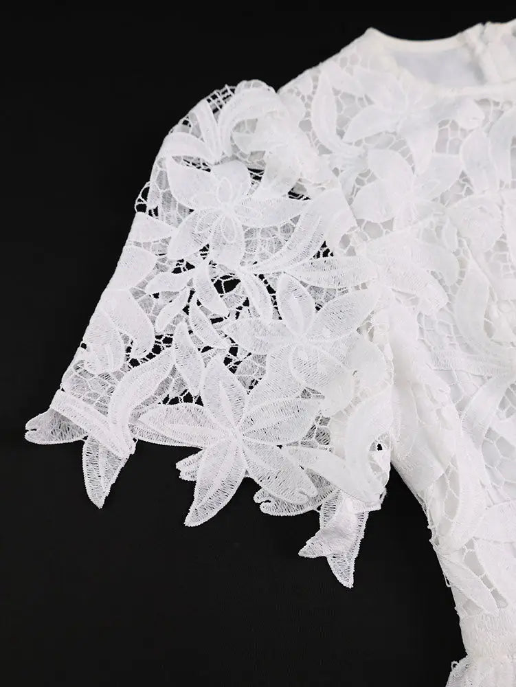 AOMEIDRESS Elegant A Line Lace Dress O Neck Hollow Out Short Sleeves