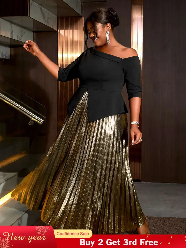 AOMEIDRESS Women Skirts Sets Irregular Black Half Sleeve High Elastic Waist