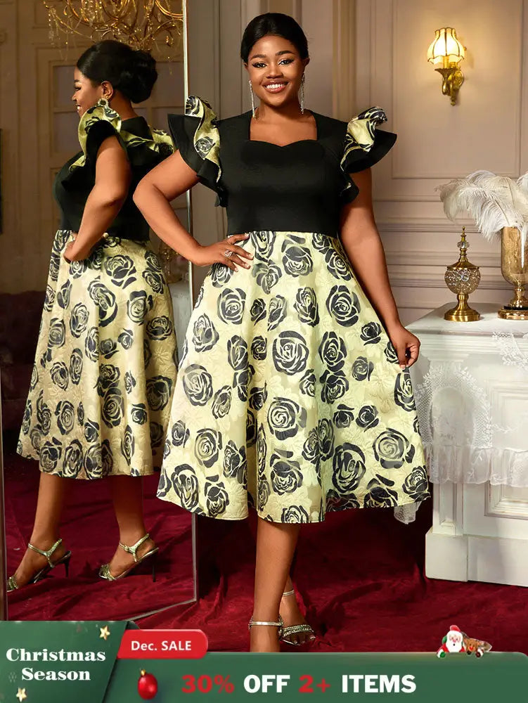 AOMEIDRESS A Line Jacquard Midi Wedding Guests Dresses Pleated Ruffles - Black / S is backordered and will ship as soon as it is back in stock.