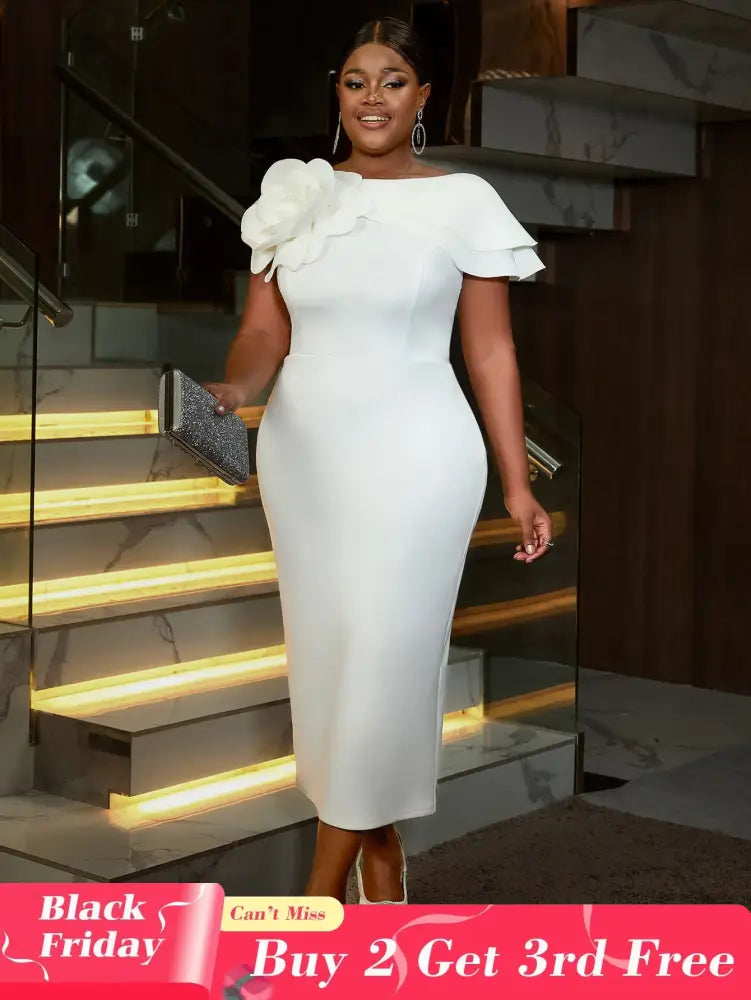AOMEIDRESS White Wedding Guest Dress for Women 3D Flower One Shoulder White Bridal Shower Dresses