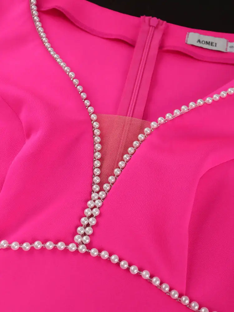 AOMEIDRESS Elegant Feather V Neck Dress with Beading for Wedding Party - Rose / S is backordered and will ship as soon as it is back in stock.